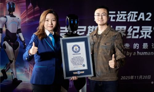 2025年11月20日,吉尼斯世界纪录认证官正式向智元机器人远征A2(SNA210041BA00652号机器人)颁发了"人形机器人行走的最远距离/Longest journey walked by a humanoid robot "认证证书,确认其106.286公里跨省行走挑战创造了全新的世界纪录。