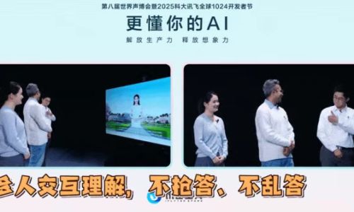 在2025年科大讯飞全球1024开发者节的现场,数字人“小飞”正与三人畅聊。TA会听能看,记得住对话人的身份、历史信息并给出贴心提醒,观察细节之后能给出详细的信息介绍与位置导览,甚至一键帮忙订票;TA能说会道,高情商回复既自然又灵动,还能用外语和外国朋友谈天说地。