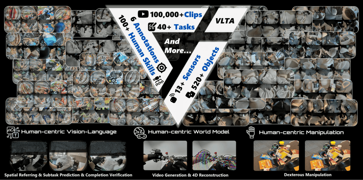 12月26日,它石智航重磅开源了全球首个大规模真实世界具身 VLTA(Vision-Language-Tactile-Action)多模态数据集 ——World In Your Hands(简称 “WIYH 数据集”):https://wiyh.tars-ai.com/。该数据集首次亮相于今年10月,并在刚刚结束的它石智航技术首秀发布上,作为「超级算法」中的核心成果之一得到行业广泛认可。首秀现场展示的世界首台可人工刺绣机器人等成果,其丝滑动作背后的核心正是基于 WIYH 数据集训练的AWE2.0模型。