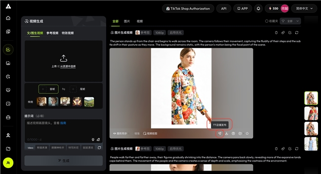 •全链路高效协同:无需切换TikTok后台,在vivago.ai平台即可完成作品编辑发布,大幅节省运营时间成本;