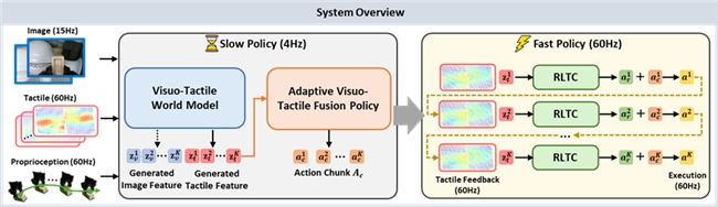 OmniVTA慢策略:视触觉世界模型+自适应融合策略