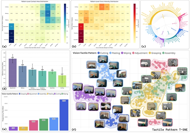 这是迄今为止规模最大、质量最高的视触觉操作数据集之一,目前已收录2万余条操作轨迹,覆盖近百类任务和百余种物体,并将接触模式系统性分为擦拭、削皮、切割、抓取、装配以及手内调整六类,在数据采集过程中严格保证视觉、触觉与动作的高精度同步,并保留了原始传感器频率。该数据集也同步受到了业界认可,获得由魔搭社区(ModelScope)主办的“EAI-2025年度10大数据集”奖项。
